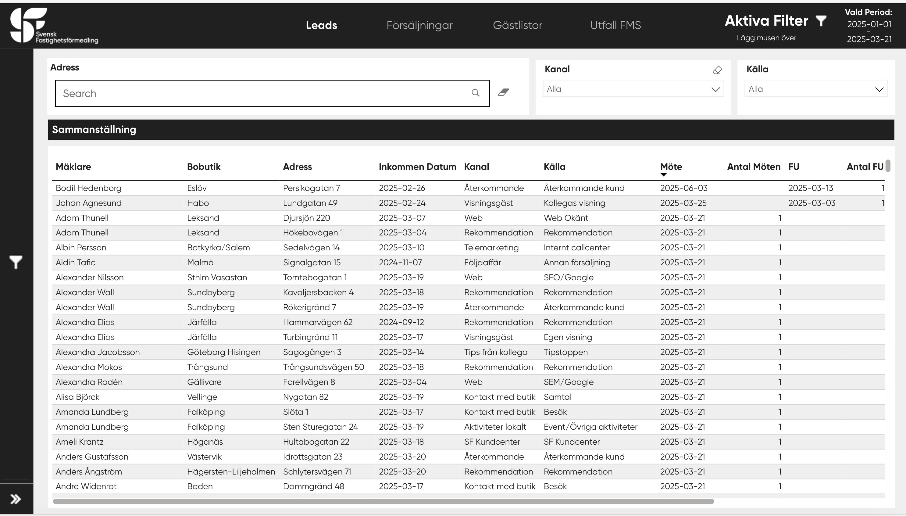Varje möte registreras i PBI efter "unika kunder med unika objekt". Om man har haft möte med en återkommande kund så kommer det inte räknas in. Även om kunden flyttas till en annan mäklare kommer detta ej ränkas in. Anledningen för detta är att annars skulle man kunna fuska i statistiken genom att göra flera mötesbokningar eller genom att flytta från butik till butik. Så vi går efter unika möten.