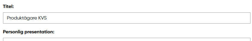 Skrollar ni ned en bit på sidan så finns ett fält för titel. Fyll i vad ni önskar att det ska stå och gå sedan längst ned för att spara din profil.