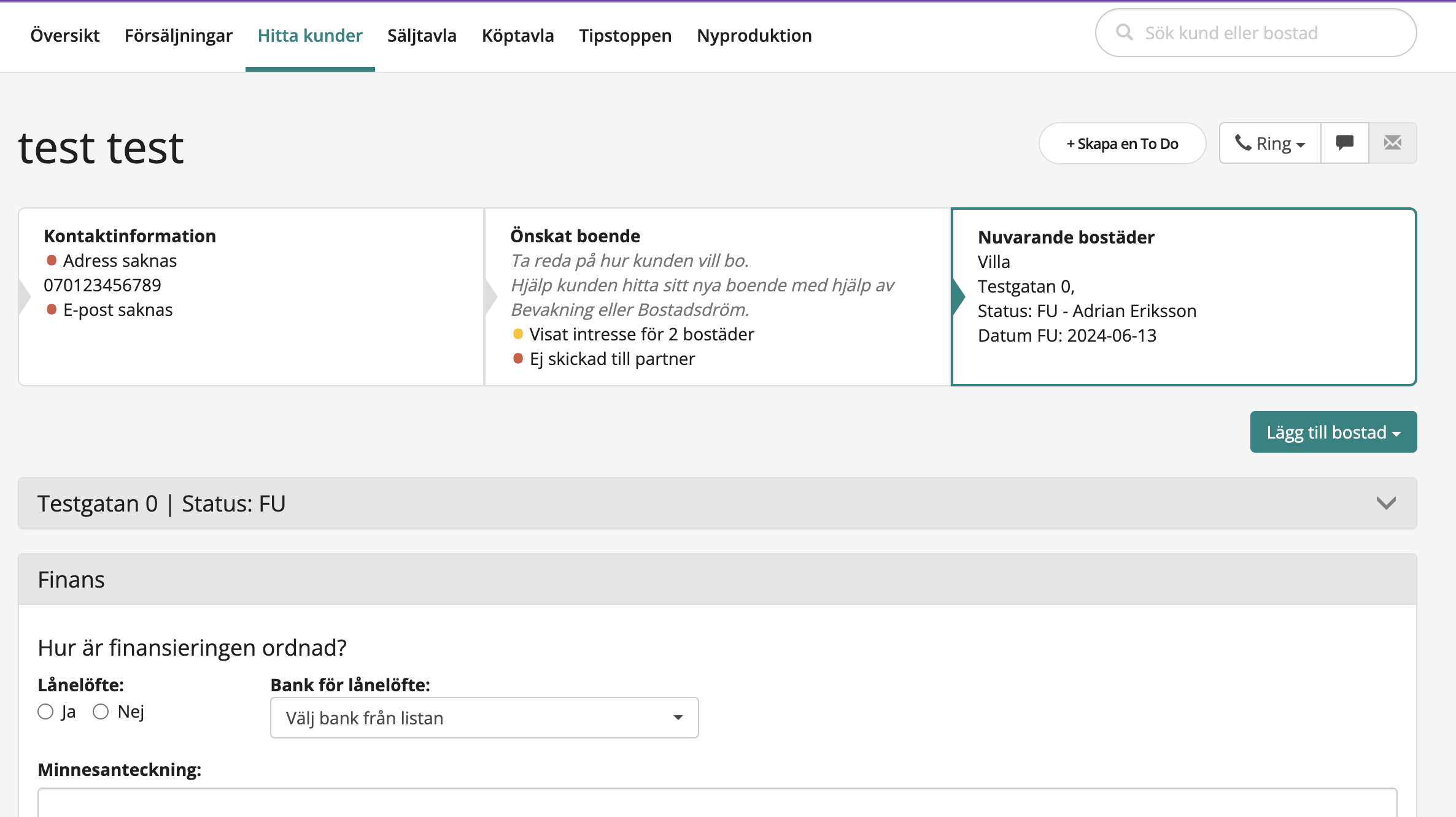 Om man vill byta person som ansvarar för bostaden går man till kundens kundkort. Gå sedan till bostaden.