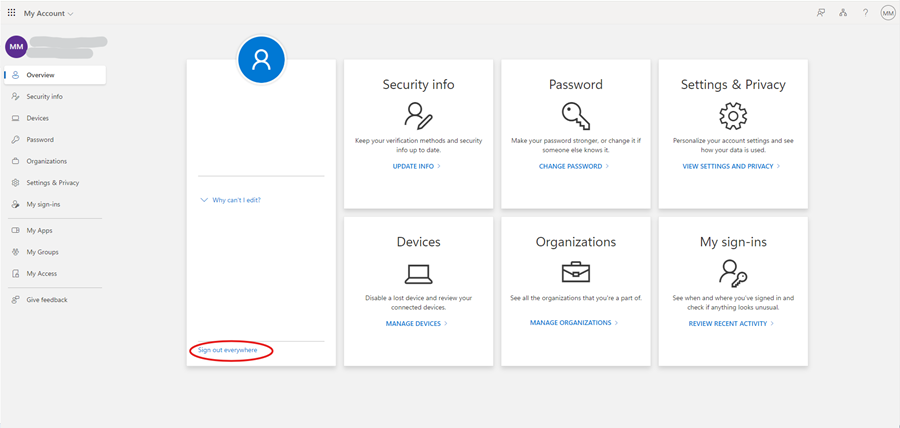 När du har gått in på visa konto hitta därefter länken för att logga ut överallt och klicka på ok.